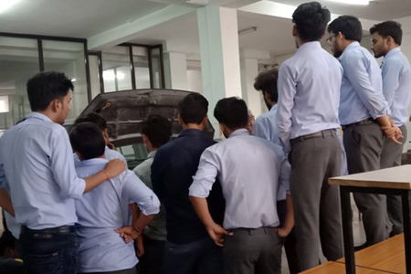 Department of Mechanical Engineering at G L Bajaj has a fairly equipped automobile workshop with wide range of cut sections of various parts of an automobile, a BMW engine and working models of car parts. The Department is in the process of developing and modernizing the work shop to create a viable infrastructure with certain basic facilities including a modern MPFI car and some essential diagnostic equipment to train the aspiring students to learn and handle the complex mechanism of the cars and get in hand experience to diagnose, rectify and service the car the way it would be done in a standard workshop. It is proposed to introduce a separate course with a duration of at least twelve weeks to impart theoretical and “on the job “training to the students to acquire adequate skill to get placements in any modern workshop at working/supervisory/managerial levels.